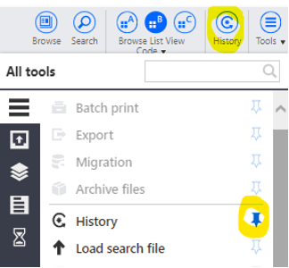 In the image below, we have pinned the History to give us quick access to searches we’ve run.
